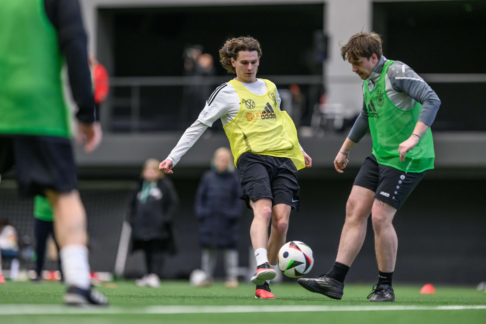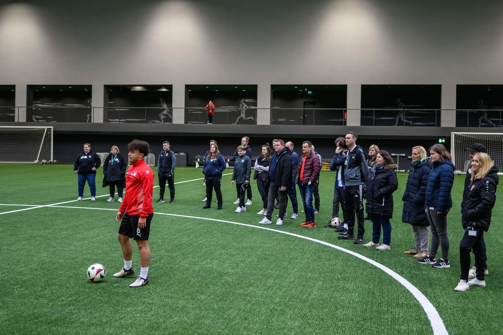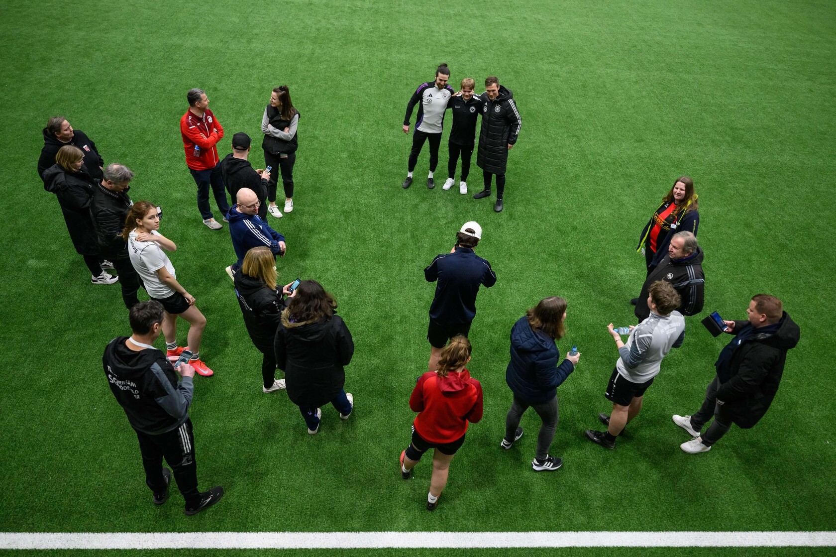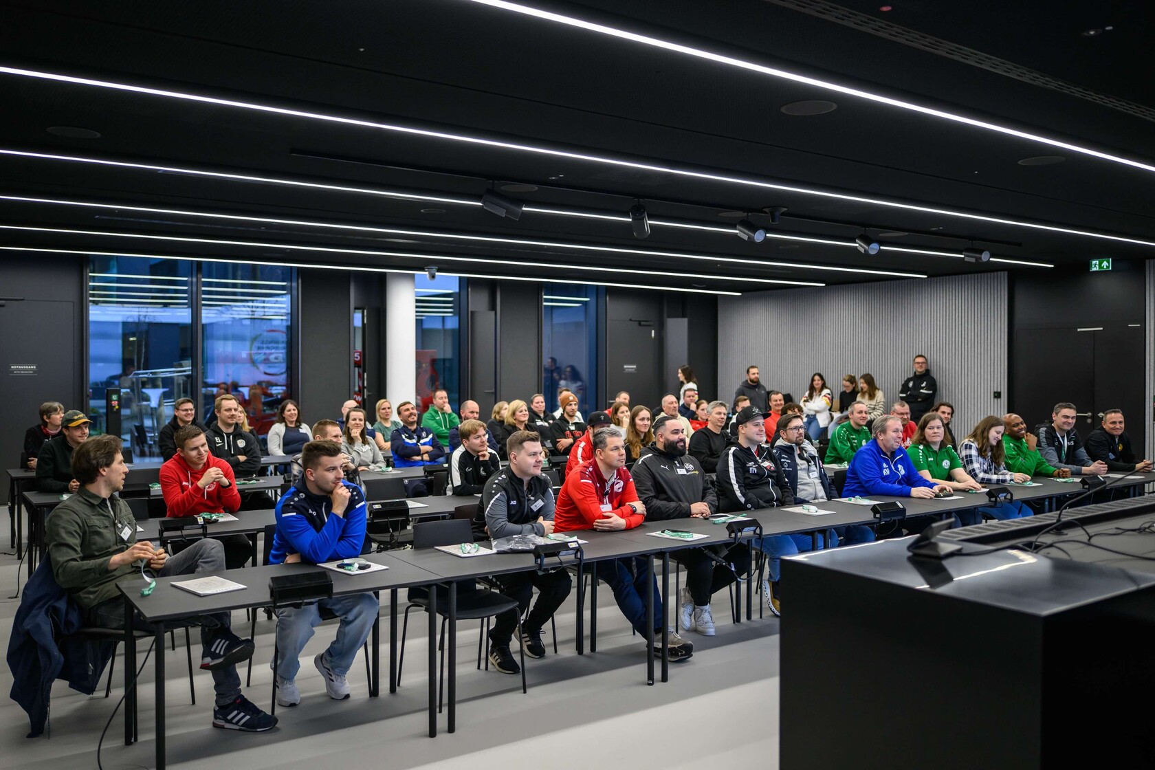Gleich zu Beginn der Veranstaltung wurden alle Teilnehmenden herzlich begrüßt, bevor sie eine exklusive Führung über den DFB-Campus erhielten. Der beeindruckende, 180 Millionen Euro teure Gebäudekomplex im Herzen Frankfurts mit modernsten Trainings- und Analysebereichen, riesiger Kunstrasenhalle und fortschrittlichsten technischen Möglichkeiten beeindruckten nachhaltig.