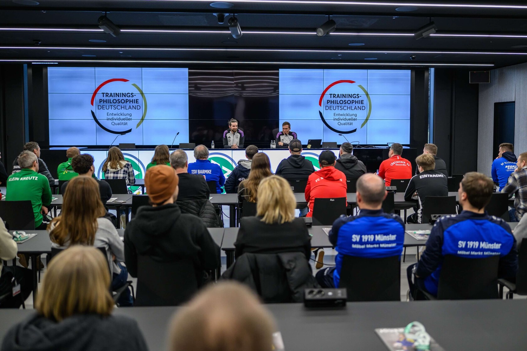 Im Anschluss an die Praxiseinheit zurück im PK-Raum hatten die Teilnehmenden die Möglichkeit, ihre Fragen direkt an Wolf und Stredak zu richten. Die Experten gingen ausführlich auf alle Fragen sowohl zur Trainingsphilosophie als auch auf "Off-Topic"-Fragen ein und lieferten wertvolle Impulse für die eigene Trainingsgestaltung und einzigartige Einblicke in die Arbeit von DFB-Trainern. „Es war beeindruckend, wie offen und detailliert sie auf unsere Fragen eingegangen sind. Man hatte das Gefühl, wirklich auf Augenhöhe diskutieren zu können.“, so Ritter begeistert.